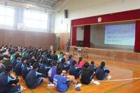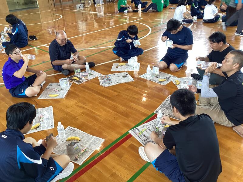 4時間目から昼休みには、地震を想定した避難訓練を行い、そのまま体育館で食事訓練を行いました。