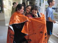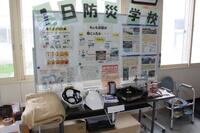 生徒玄関前には、雨竜町役場からお借りした町の防災備品などを展示しました。