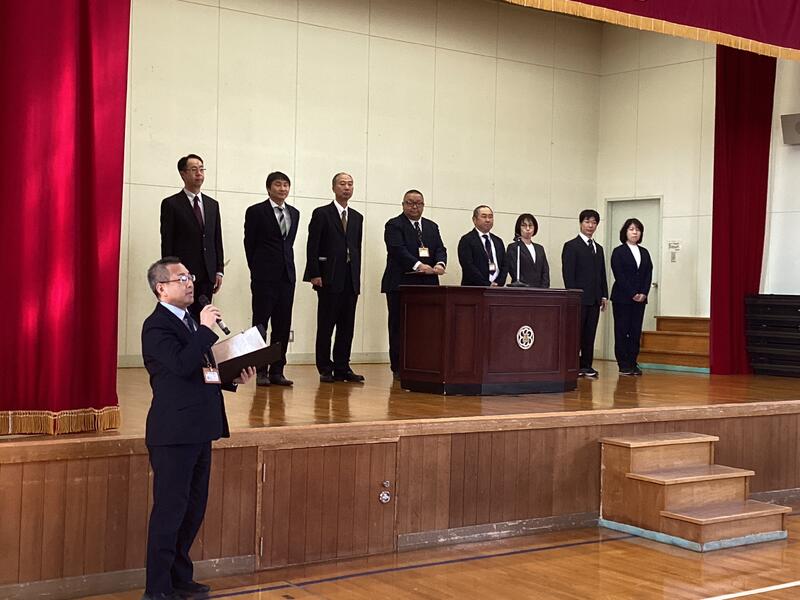 終業式の後は、離任式が行われました。退職、転出する教職員から挨拶がありました。8名の方々には、学校、寄宿舎、事務の面で、ご尽力いただき、たいへんお世話になりました。今後のご活躍を願っております。