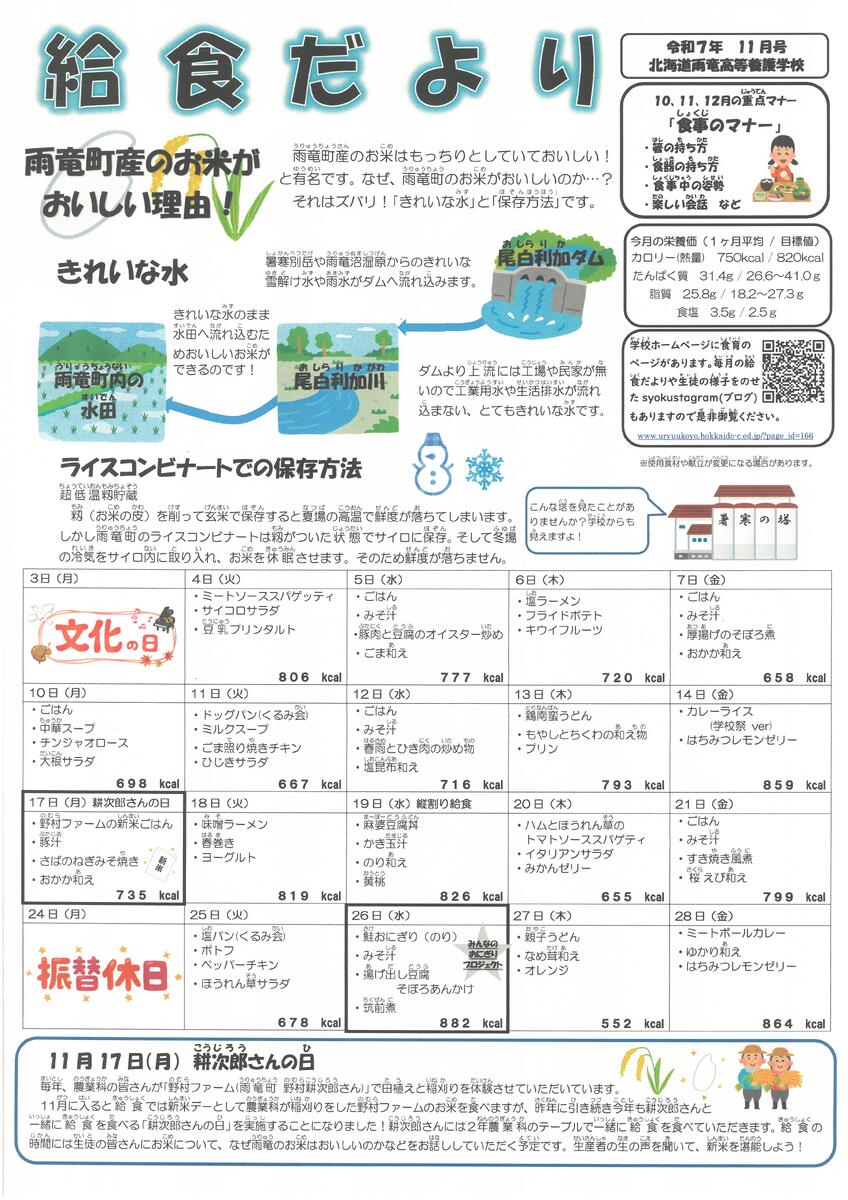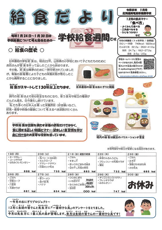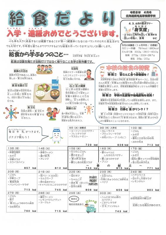 このページでは本校の「給食だより」(献立のみ抜粋)を掲載します。