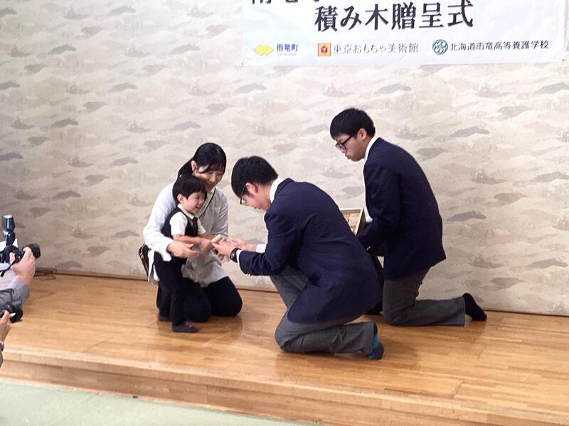 生徒たちも約半年作り続けた積木が、やっと人の手に渡るうれしさと達成感があったと思います。