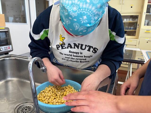 2月3日(火)、全国豆腐連合会 相原様より多くのアドバイスや資料をいただき、大豆から豆腐を作る作業学習を、丸一日かけて実施しました。