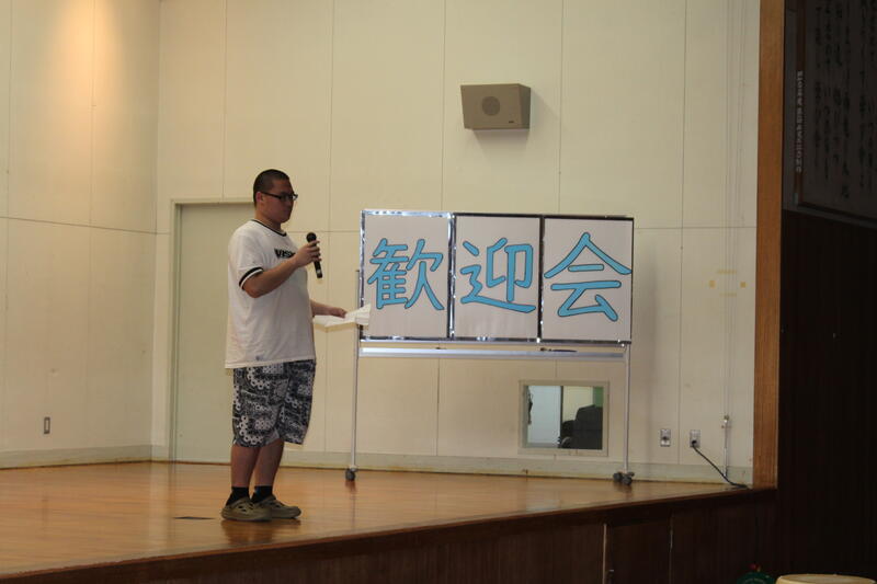 夕食は歓迎会特別メニューをみんなで一緒に食べたあとは、体育館で新入生からの自己紹介、寮友会代表からの歓迎の言葉、太鼓クラブの演奏、寄宿舎紹介ムービーの上映、新入生代表からの挨拶など盛りだくさんの内容でした。